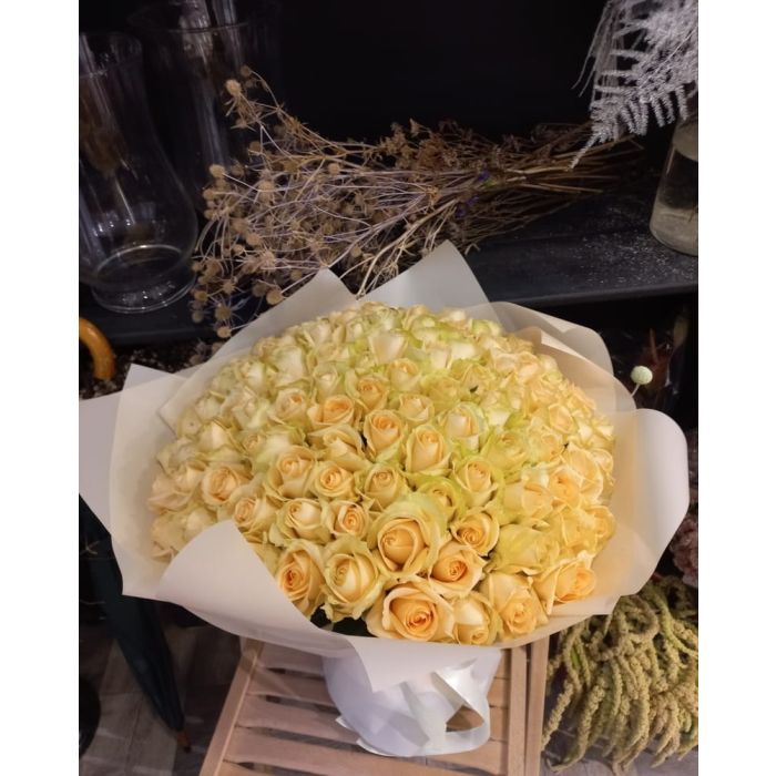 Купити букет 101 кремова троянда в Харкові