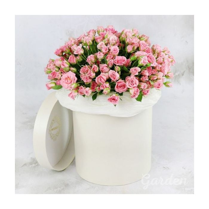 кустовая роза - 51 шт.; коробка; флористические материалы.