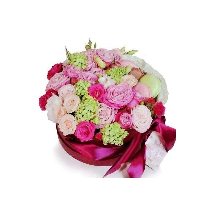 Удивительно красивое сочетание нежных цветов и атласа не оставит равнодушной ни одну девушку. Микс из нежных роз, эустом и изящной гортензии, дополненный атласными лентами и настоящими французскими макаронс – прекрасная альтернатива классическому букету. Купить цветы в коробке "Атлас и цветы" вы можете у нас на сайте. Для этого достаточно оформить заказ, указать адрес получателя и оплатить букет любым доступным для вас способом. Интернет доставка цветов "Розарий" поможет вам порадовать близкого человека