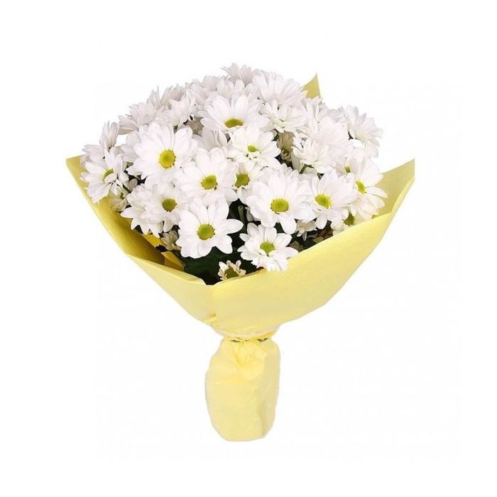 Це вишуканий букет із білих кущових хризантем. Такі квіти є символом чистоти, мудрості, довіри. Їх дарують чоловікам і жінкам, колегам, керівникам – букет не має романтичного підтексту, він говорить про дружбу, повагу.