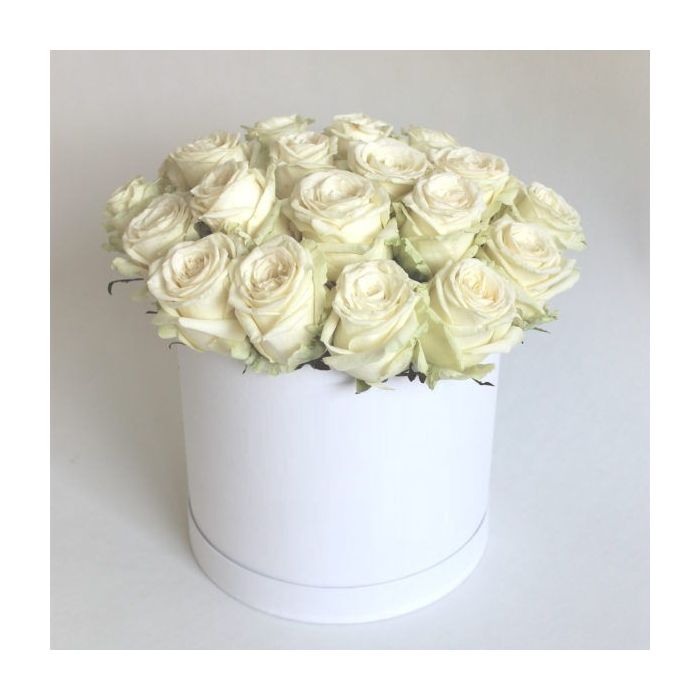 Незвичайна композиція з найніжніших дев'ятнадцяти білих троянд у стильній капелюшній коробці стане справді оригінальним сюрпризом. Такий чудовий подарунок однозначно підніме настрій кожної жінки.