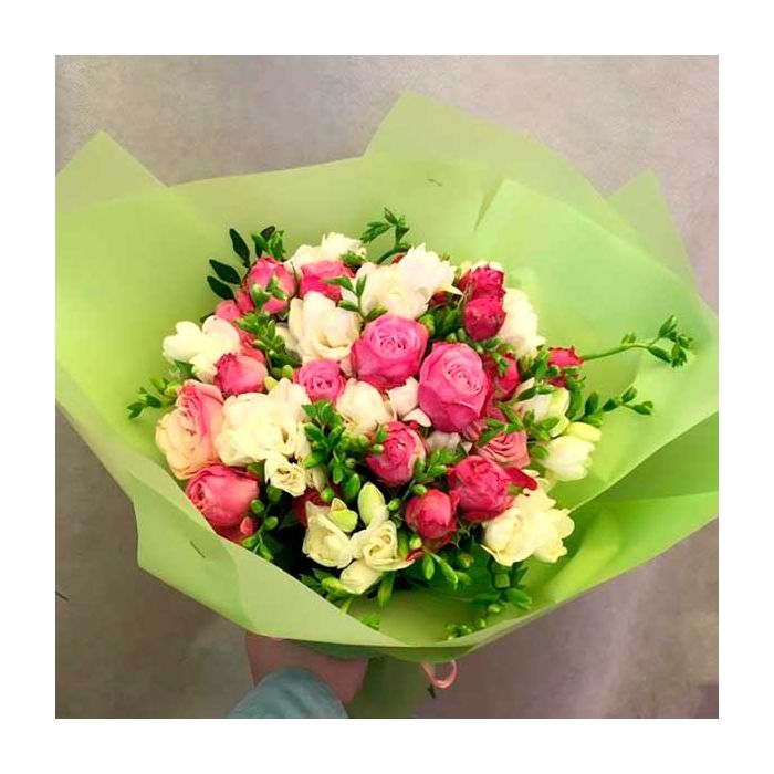 Опис / Букет із фрезій та троянд "Belle"