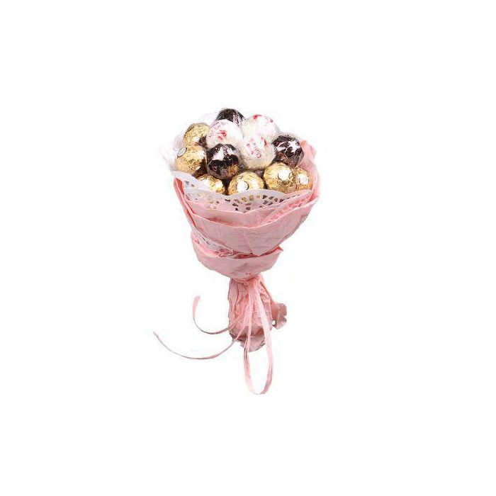 >У нас можна купити солодкі кошики або композиції з квітів та ласощів. Ми використовуємо якісні насолоди, щоб одержувач насолодився смаком. Одні з найпопулярніших – італійські цукерки: у них ніжний смак, такі ласощі виготовлені з продуктів високої якості. У букеті із шоколадних цукерок «Фереро Колекція» ніжні кокосово-вершкові солодощі доповнені чорним та молочним шоколадом. У такій композиції є ласощі для справжніх ласунів-гурманів. Солодощі оформлені у вигляді традиційного букета, запаковані в крафтовий папір ніжного рожевого кольору, перев'язані стрічкою. Замовити таку композицію можна до свята, для гарного настрою чи романтичного сюрпризу. У нас можна купити доповнення до солодкого букету - іграшки, повітряні кулі. Виконуємо доставку замовлень у Харкові, кур'єри привозять квіти та солодощі цілодобово.