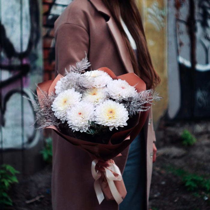 хризантема - одноголовая - 7 шт., аспарагус - 3 шт., упаковка.