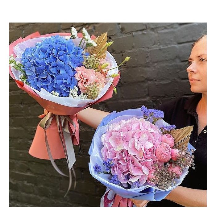 Багато хто скаже, що, найкращі квіти троянди і тільки. Але насправді яка дівчина встоїть перед гортензією? Вона підійде тим, хто хоче зробити подарунок, який символізує почуття, які не передати словами. Це по-справжньому романтична, елітна квітка, поєднана в букеті з ніжними еустомами та піоноподібними трояндами.