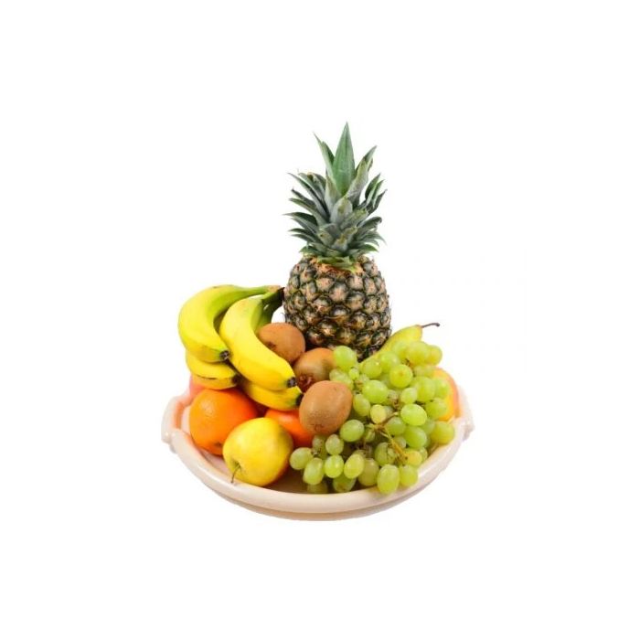 У подарунковому «Підносі фруктів» – яблука, апельсини, ананас, виноград, груші, ківі, банани. Усі фрукти красиво оформлені на таці. Це цікава ідея для подарунка шанувальникам здорового способу життя вегетаріанцям. Такий набір можна купити для вчителя чи керівника, у тих випадках, коли хочеться подарувати щось незвичайне та корисне. Доповнити смачний подарунок можна невеликим букетом квітів – ми маємо композиції, які продаються недорого.