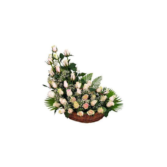 Опис / Кошик із гіпсофілу та троянд "Каскад"