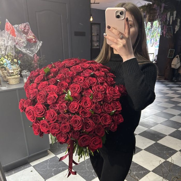 Роза здавна вважається королевою квітів. Червоні бутони символізують пристрасть, бажання та щиру любов. Саме тому шикарний букет із 101 червоної троянди стане чудовим подарунком для коханої дівчини для будь-якої нагоди: на День Народження, День усіх закоханих, 8 Березня.