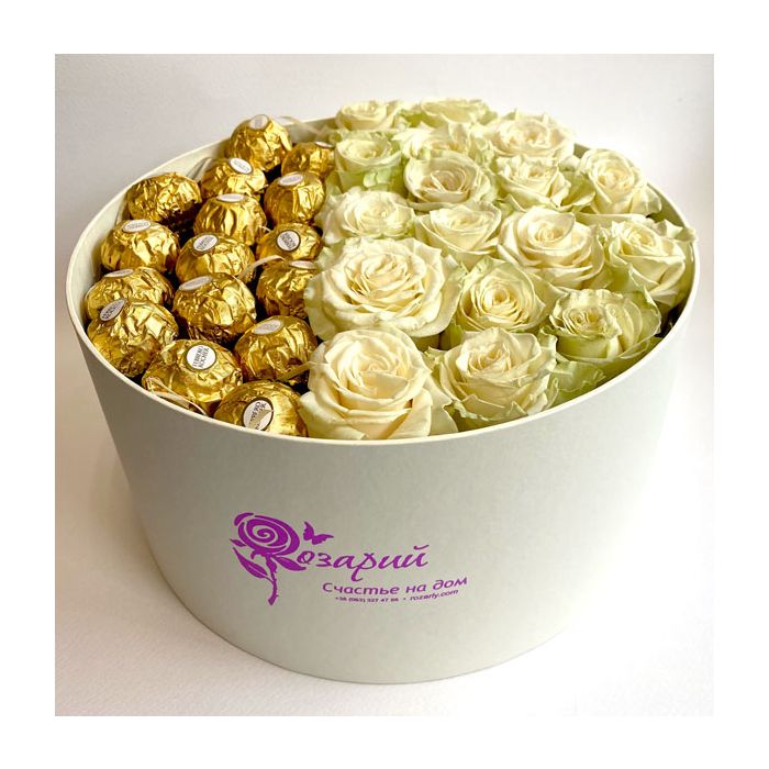 Коробка троянд з Ferrero Rocher