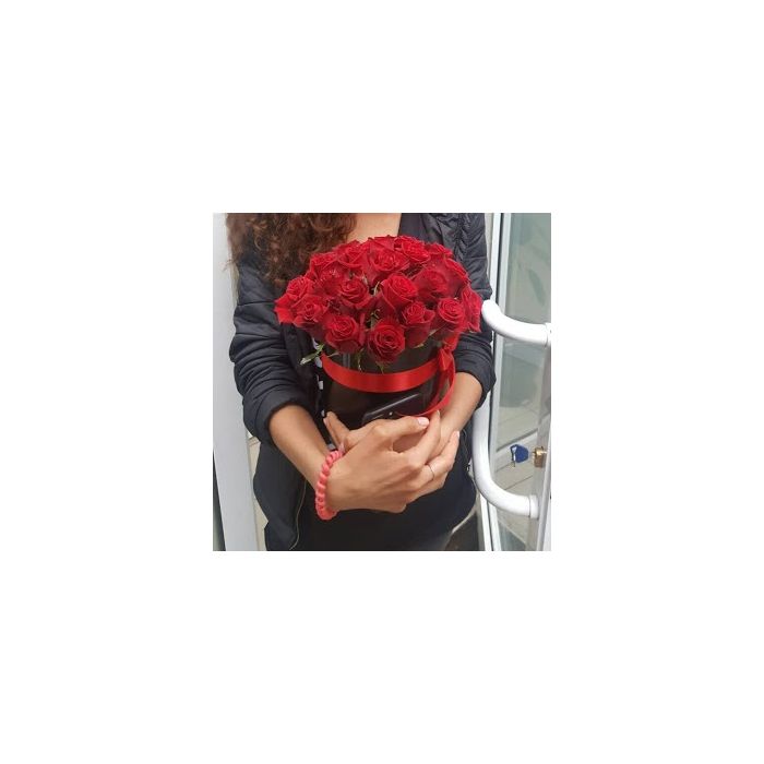 Коробка з 25 червоними трояндами "Червоне та чорне"
