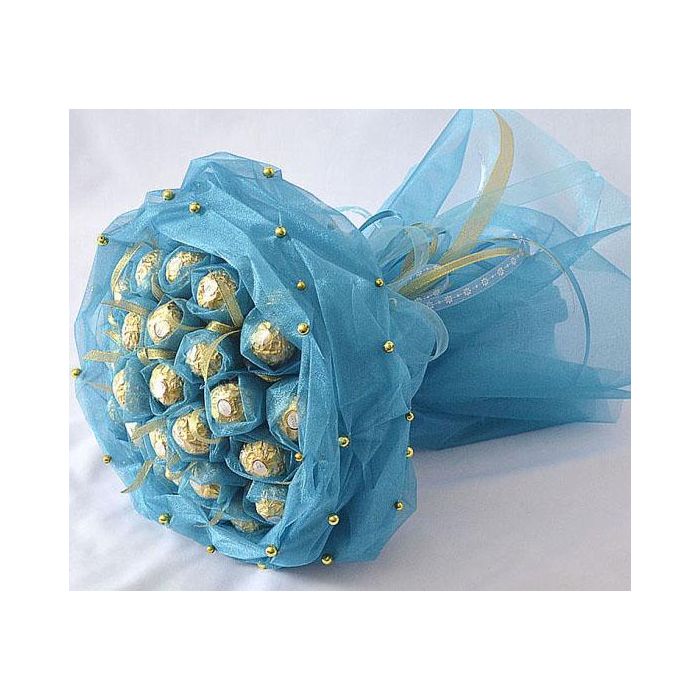 Блакитний букет з цукерок Ferrero Rocher з доставкою по Харкову