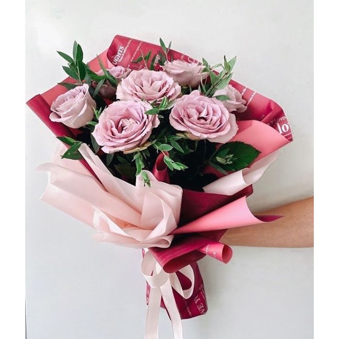 роза - 7 шт.; зелень