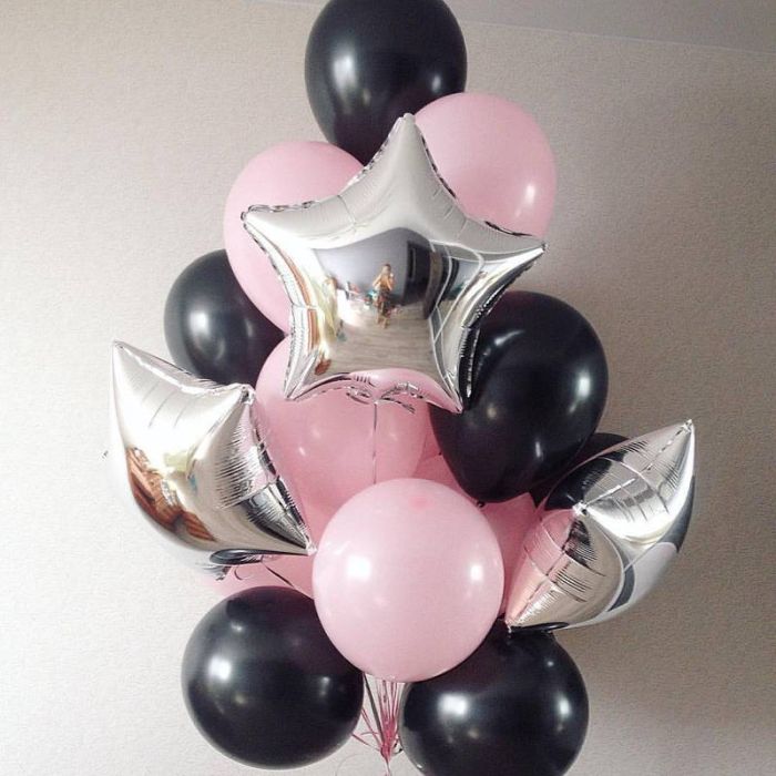 шар латексный розовый и черный - 13 шт.; шар фольгированный звезда - 3 шт.