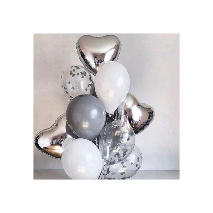 шар латексный пастель - 5 шт.; шар латексный хром - 3 шт.; шар фольгированное сердце - 3 шт.