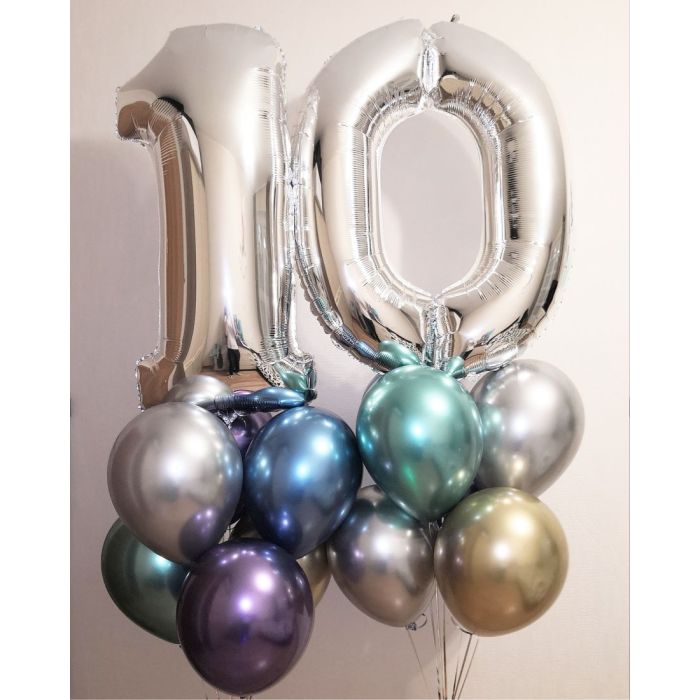 шары латексные хром - 12 шт.; цифры фольгированные - 2 шт.