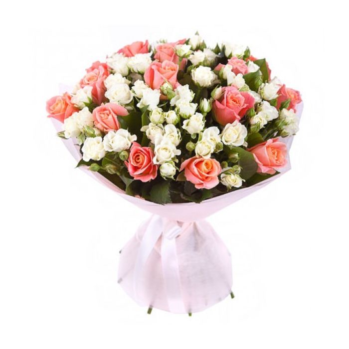 Опис / Букет коралових та кущових троянд "Ніжність"