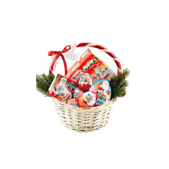 Наші флористи створили дитячі новорічні кошики, які можна вручити від батьків або сховати під ялинкою як сувенір від самого Діда Мороза. Флористичний кошик з яскравою ручкою наповнений ялиновими гілками, новорічними прикрасами та солодощами. У ній є шоколадні яйця, набори ласощів Кіндер, дитячий шоколад. Дитина неодмінно зрадіє такому подарунку. Піднести солодкий подарунковий кошик можна і дорослим ласунам, доповнивши його букетом квітів або листівкою. У нас можна купити м'які іграшки – вони стануть ще одним приводом для радості.