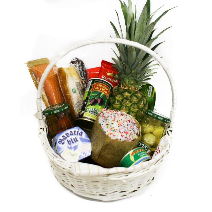 Ми врахували всі традиції оформлення великоднього обіду та склали ідеальний кошик – «Смачного Великодня». Такий подарунок стане чудовим доповненням святкового столу, адже тут є все, що ви можете побажати: традиційна паска, шоколад, фрукти та овочі, копчена грудинка, найсмачніша сьомга, сир, ковбаса і, звичайно ж, червона ікра.