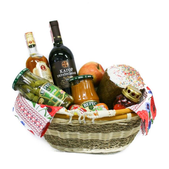 У нашому великодньому наборі є все, що знадобиться для урочистого застілля. Паска – головний символ свята, смачна та ароматна випічка, яка обов'язково має бути на столі. Великодні яйця – символ життя та родючості. Кагор, який символізує кров Христа, також є обов'язковим елементом на святковому столі. Крім того, в наш кошик ми помістили фрукти та овочі, які ніколи не будуть зайвими.