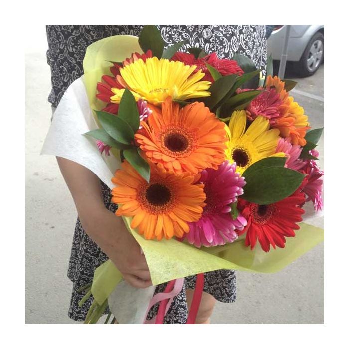 Яскравий і сонячний букет з гербер створений для того, щоб радувати оточуючих! Погляньте на цю композицію... У ній ми зібрали лише найкрасивіші квіти - яскраві й теплі, наче промені ранкового сонця, гербери. На нашому сайті ви можете замовити чудові живі букети з доставкою в будь-який куточок міста Харкова. Здійснюється доставка квітів цілодобово недорого, тому ви зможете порадувати близьку вам людину в будь-який час дня та ночі.
