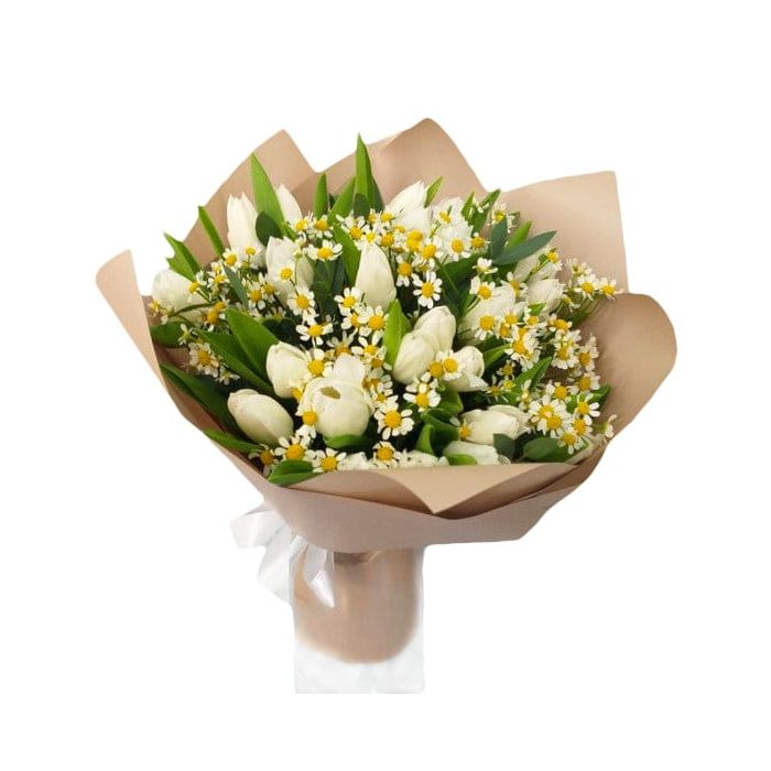 тюльпан - 19 шт.; ромашка - 10 шт.