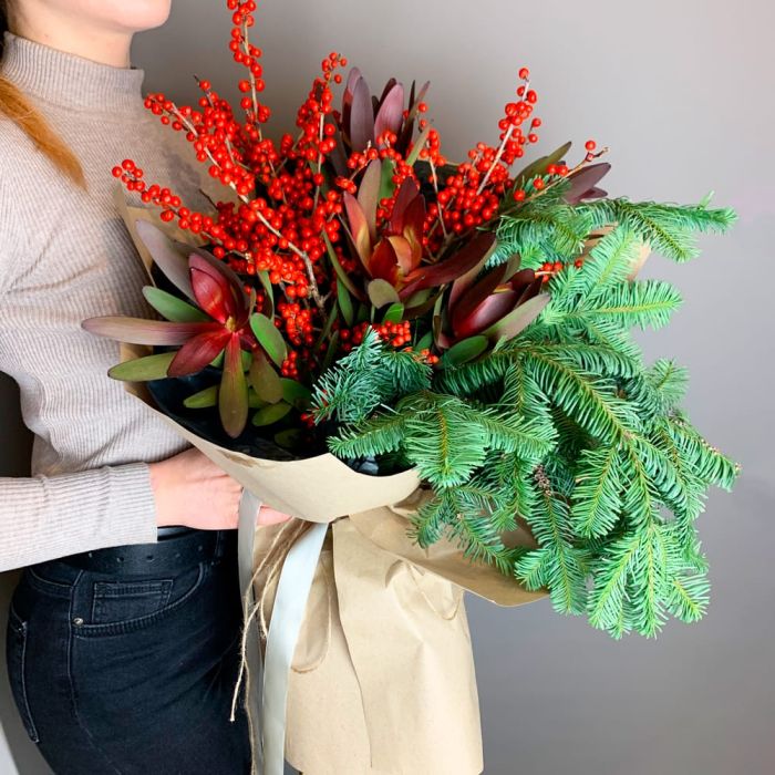 нобилис - 2 ветки; илекс - 3 шт.; леукодендрон - 5 шт., упаковка.