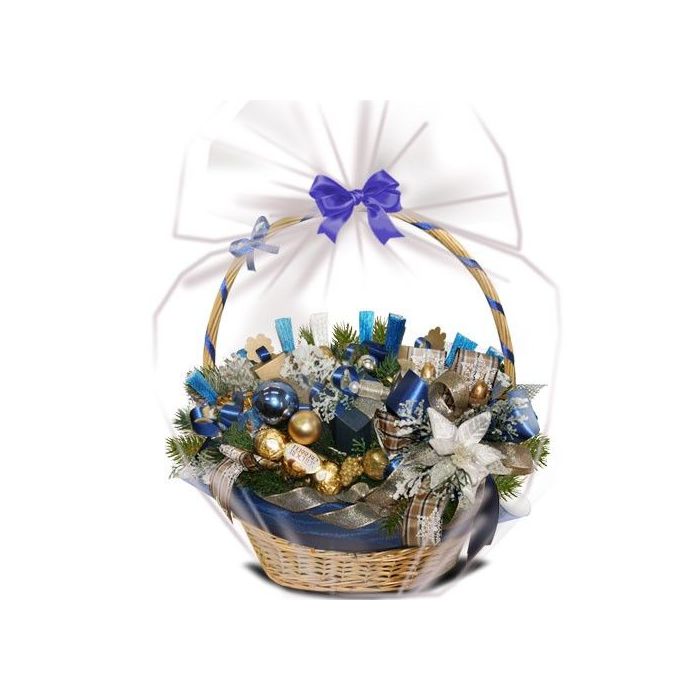 В состав композиции, кроме интересного праздничного декора в виде бантов и леточек, еловых шишек и игрушек, входят вкуснейшие шоколадные конфеты. Если вы ищете особенный необычный вариант сюрприза, то такая корзина с яркими сувенирами вам однозначно подойдет.