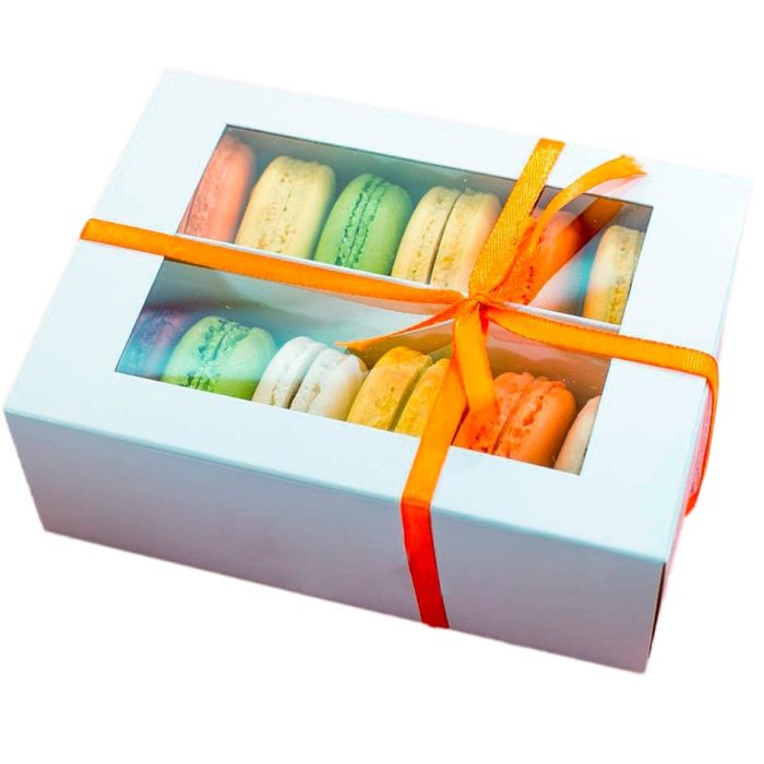 Макаруни – невеликі французькі тістечка, які сьогодні набирають все більшої і більшої популярності. Ніжне бизе завдяки мигдальній муці стає хрумким, а солодкий джем доповнює смак незвичайними фруктовими нотками - за це макаруни так люблять діти та дорослі. І саме для таких ласунів створено цей презент. У коробочці ласун знайде найсмачніші солодощі – ніжне французьке бізе різних відтінків: від пастельного бежевого до яскравого блакитного.