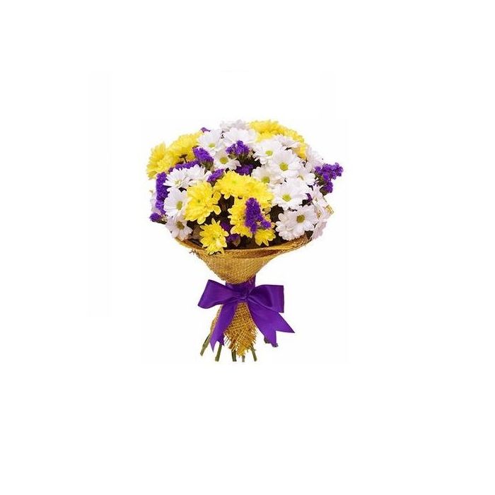 хризантема - 7 шт., сезонные травы (статица).